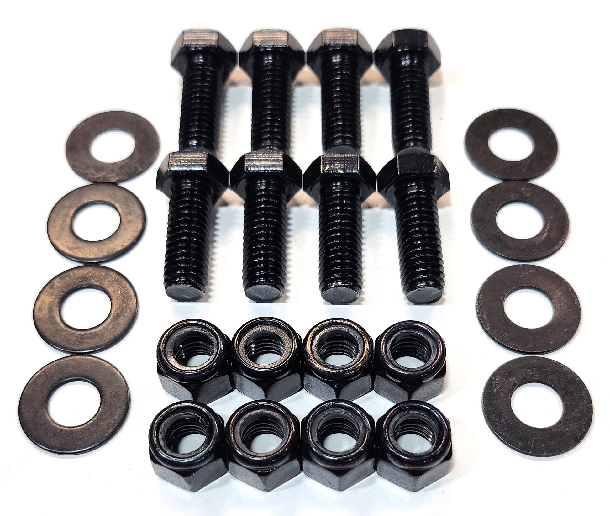 Our black oxide-coated stainless steel hardware kit includes a set of eight each of the following components: 3/8"-16 bolts measuring 1 inch in length, washers, and nylon-lock nuts. This hardware kit is specifically designed to seamlessly integrate into the side channels of all Boss Racks rails, facilitating the secure connection of accessories.