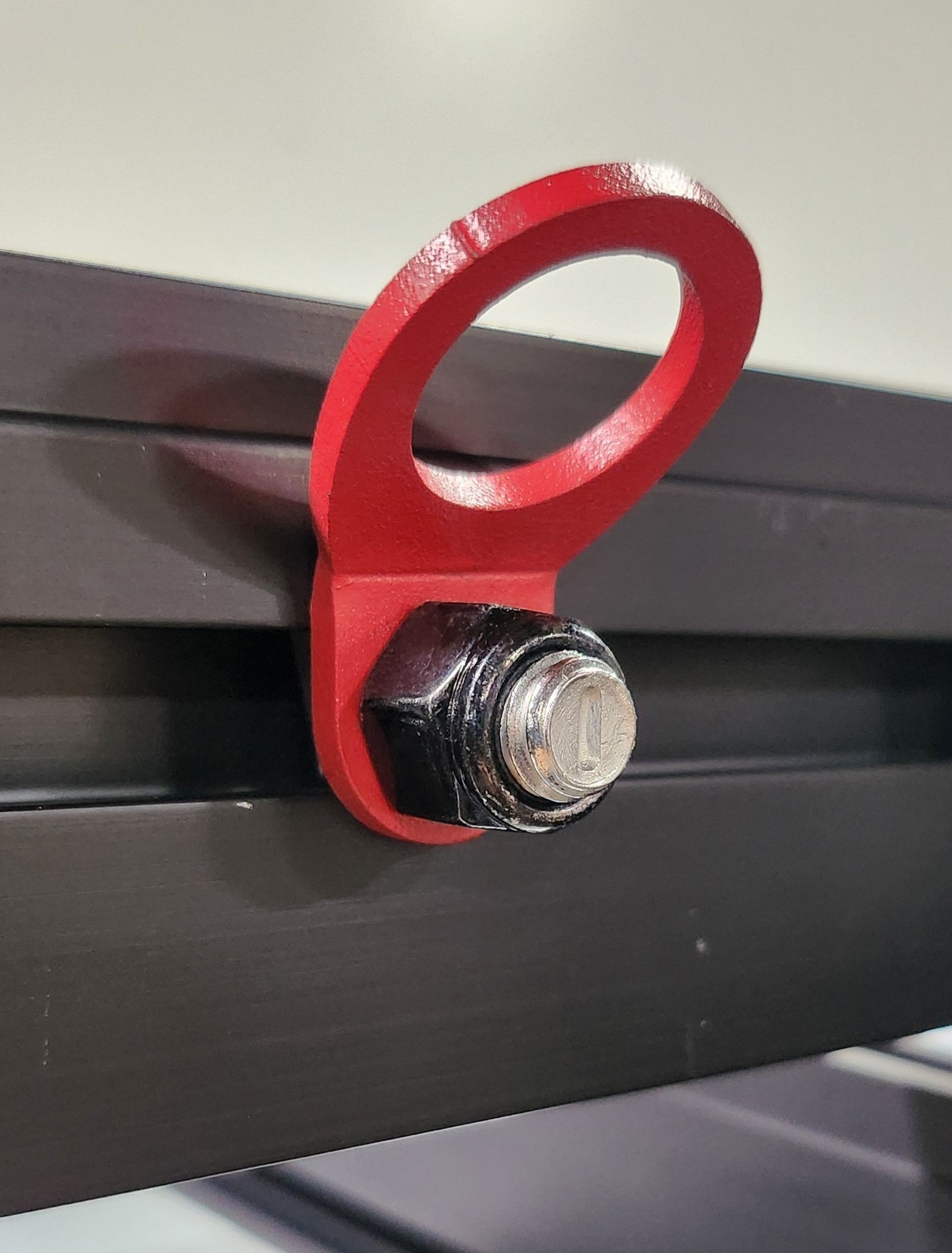 Experience the epitome of durability with our heavy-duty tie-down anchors, expertly crafted from powder-coated steel. Featuring a 3/8" mounting hole, these anchors offer versatility by easily attaching to either the side or top of all Boss Racks rails. The generously sized eyelet accommodates even the sturdiest ratchet strap hooks or heavy webbing with ease. Choose from our selection of flat red or flat black finishes to suit your style.