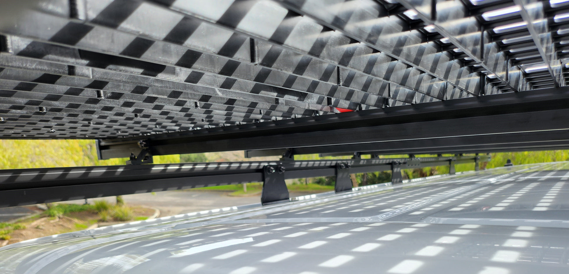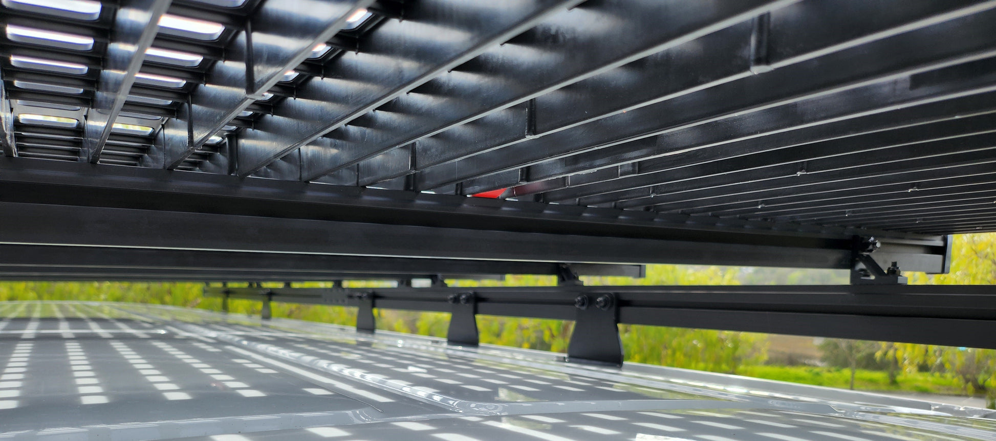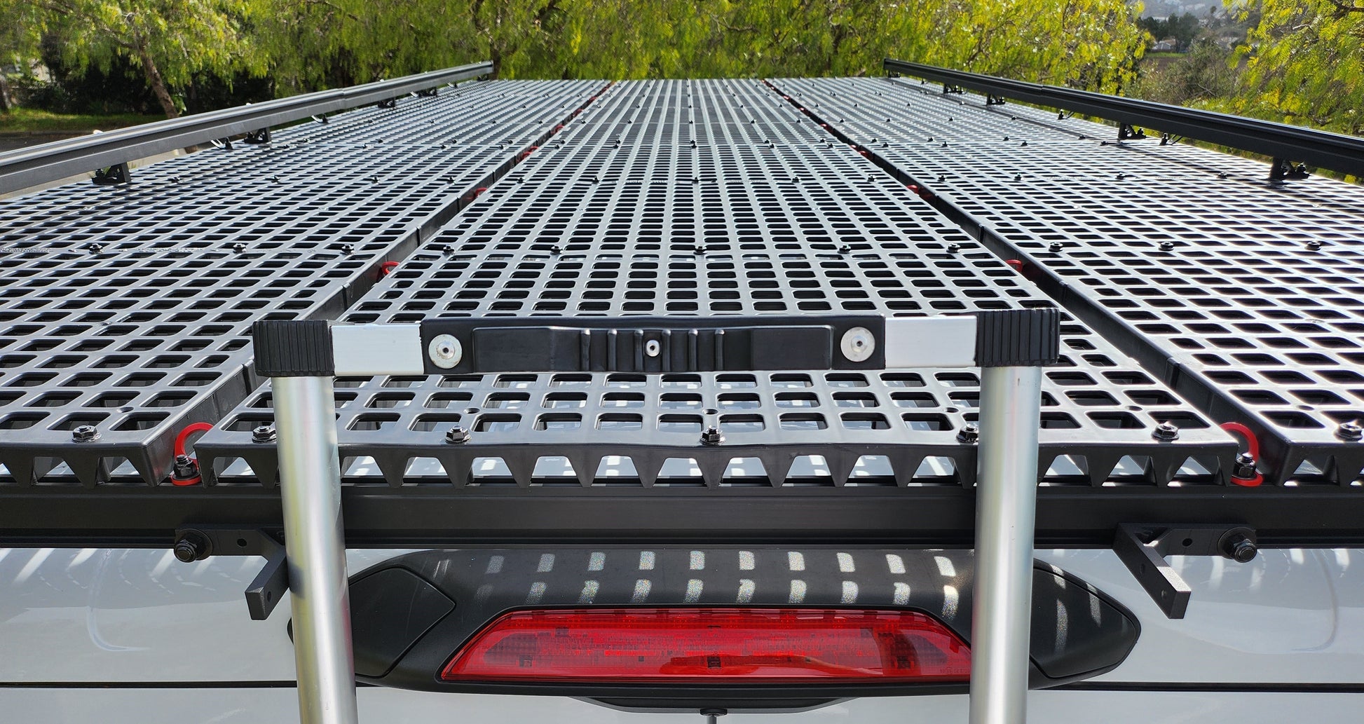 Boasting an unprecedented 44 powder-coated steel tie-down anchors, the Super Safari ensures unparalleled versatility, allowing you to confidently secure your cargo in place. As the largest and most capable rack available in the market for the Ford Transit, Mercedes Sprinter, and Ram ProMaster vans, the Super Safari sets the standard for excellence in recreational racking systems.