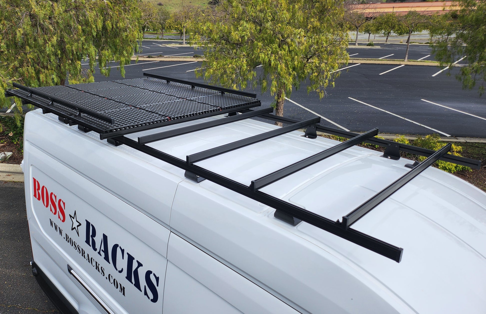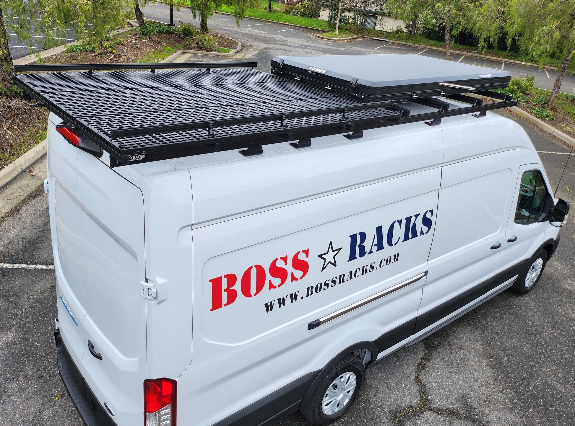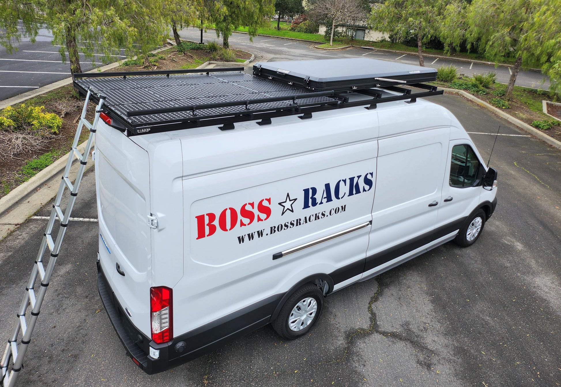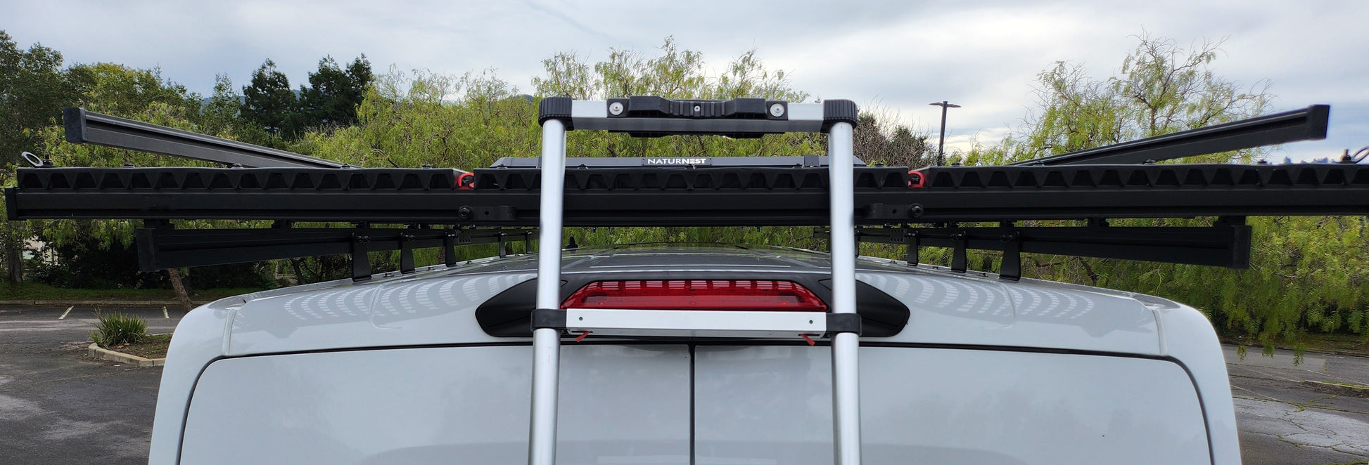 Introducing our innovative Tent Deck, meticulously engineered to accommodate a full-size roof-top tent with rear access, transforming your Ford Transit, Mercedes Sprinter, or Ram ProMaster van into a fully functional living space. Designed specifically for extended-wheelbase vans, this model features a spacious deck measuring 80 inches long by 75 inches wide, supported by our reliable standard-duty rails and incorporating durable polypropylene walking planks.