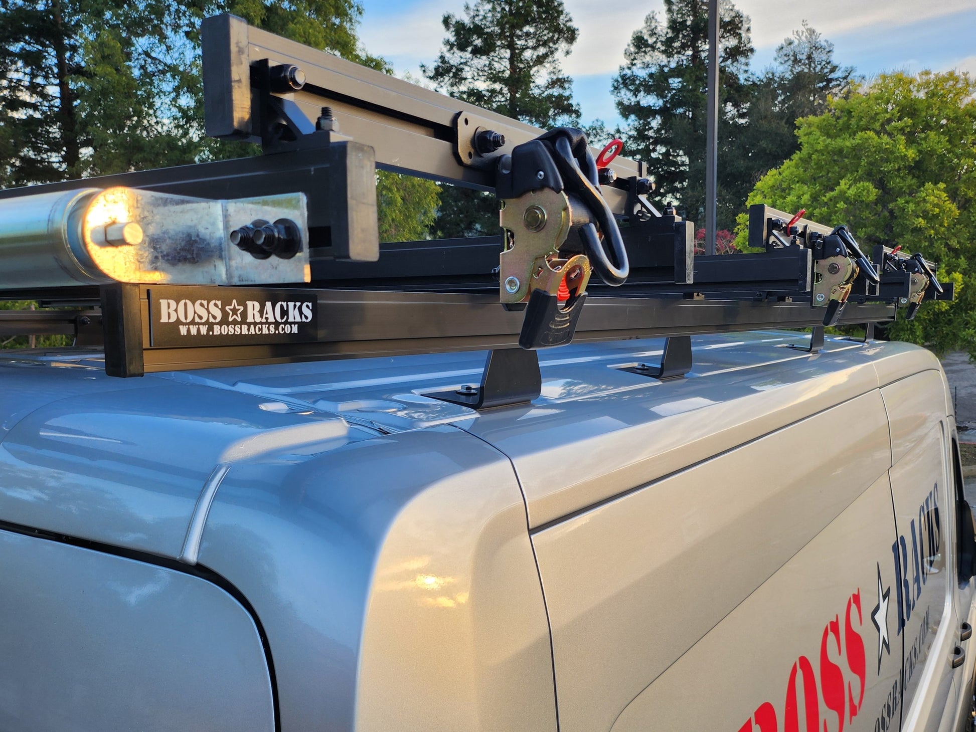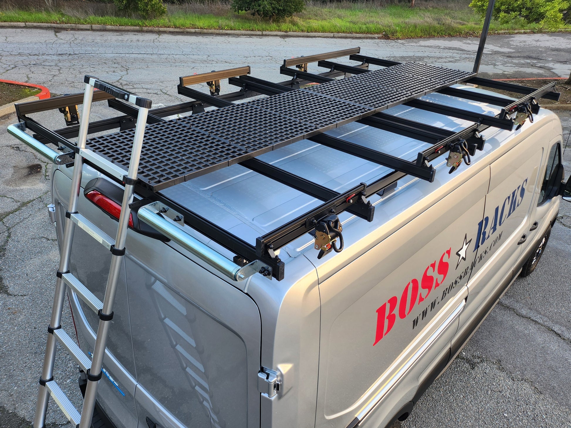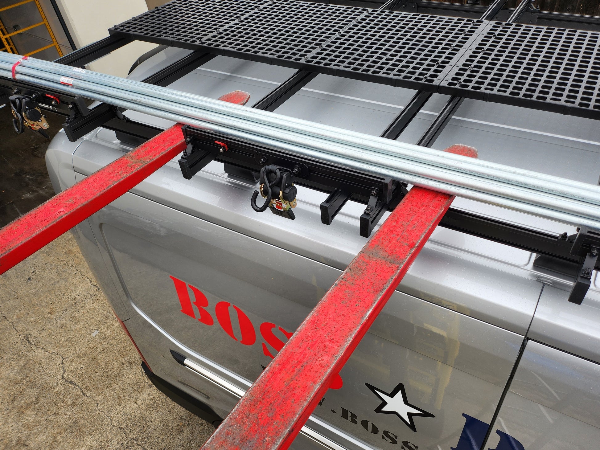Introducing The Bossman – the undisputed champion of contractor roof racking systems on the market today. Engineered to seamlessly integrate with popular van models such as the Ford Transit, Mercedes Sprinter, and Ram Promaster, the Bossman roof rack system redefines the standards of utility and innovation with a host of essential features, some of which are exclusive to our design: