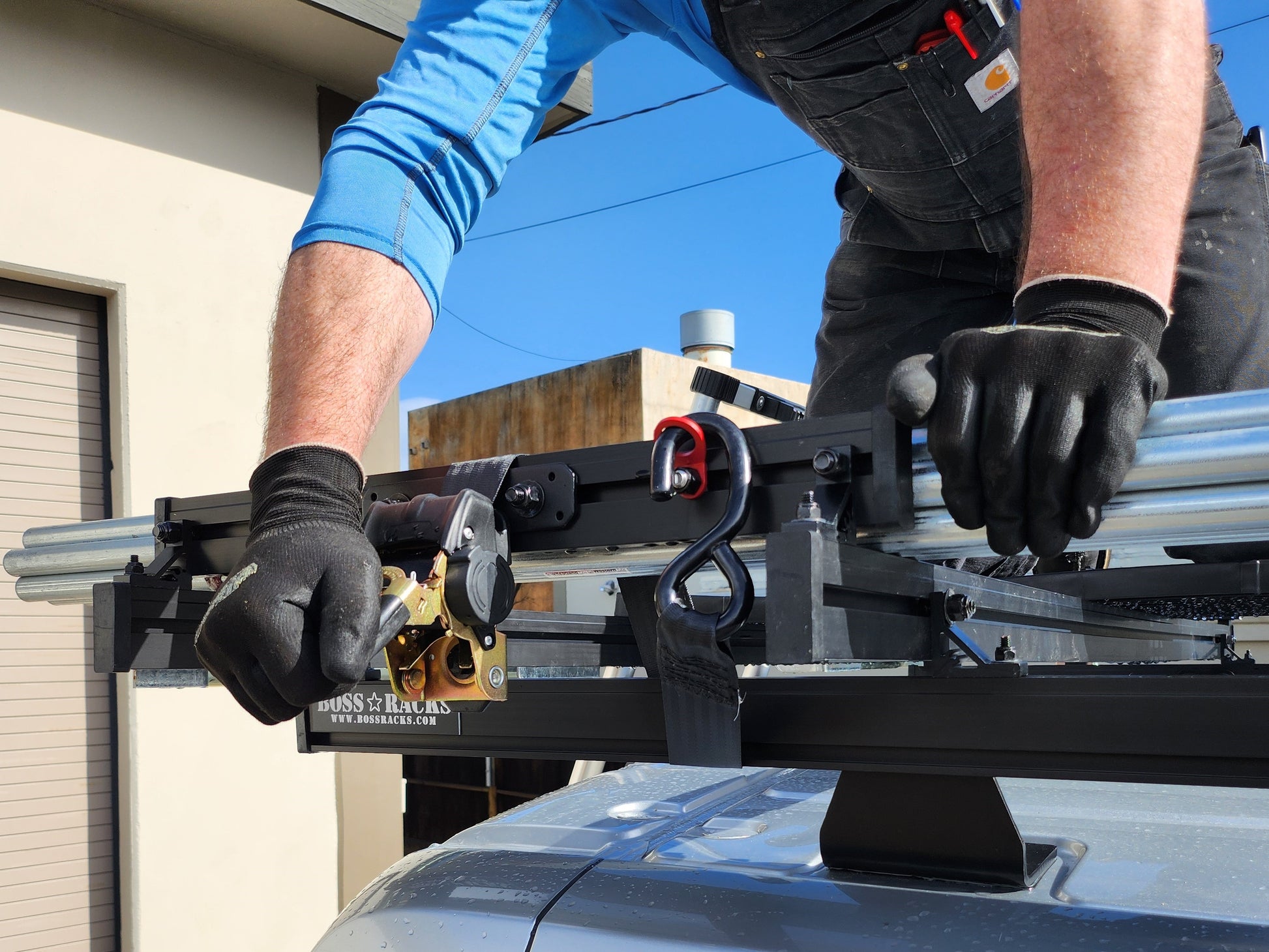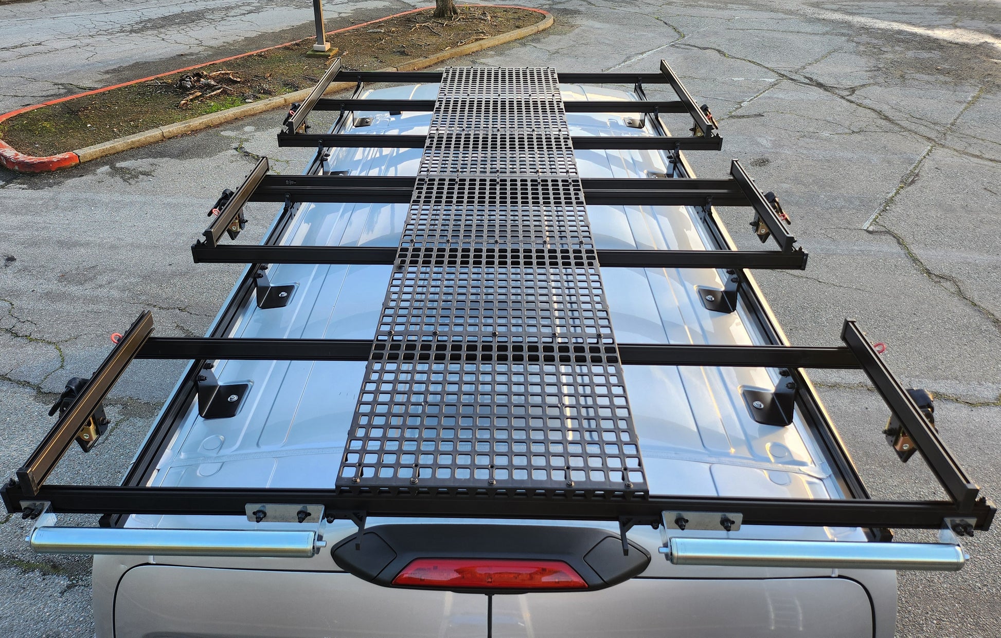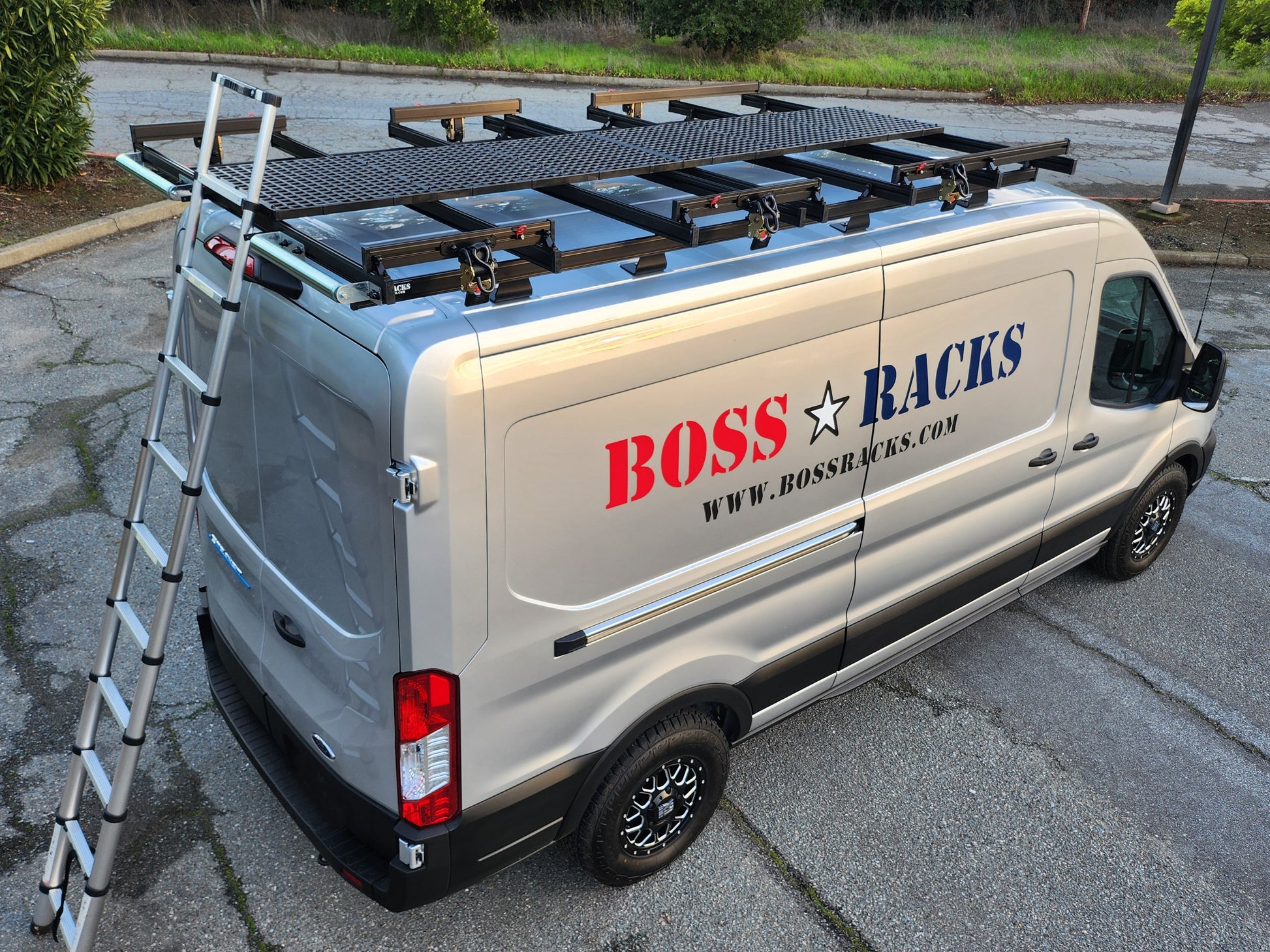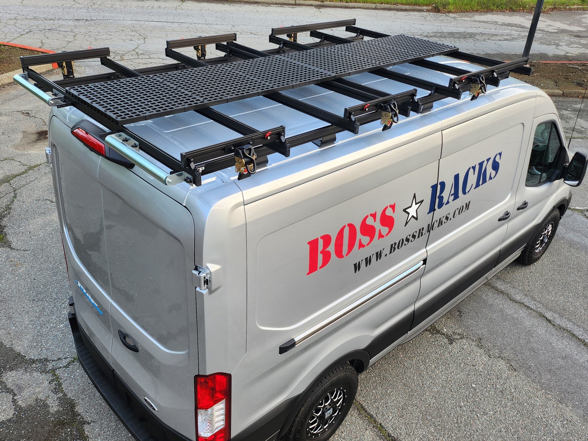 Introducing The Bossman – the undisputed champion of contractor roof racking systems on the market today. Engineered to seamlessly integrate with popular van models such as the Ford Transit, Mercedes Sprinter, and Ram Promaster, the Bossman roof rack system redefines the standards of utility and innovation with a host of essential features, some of which are exclusive to our design: