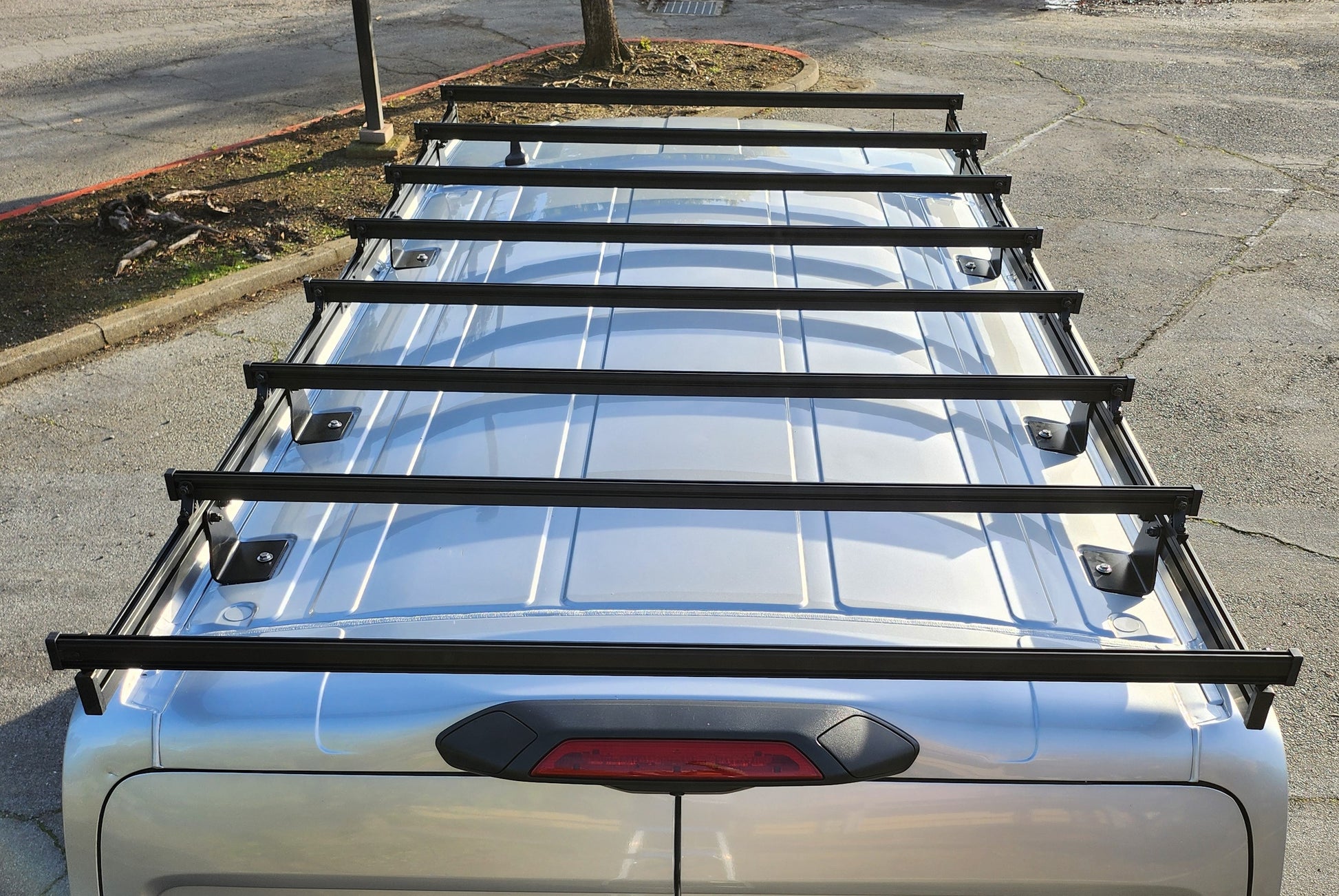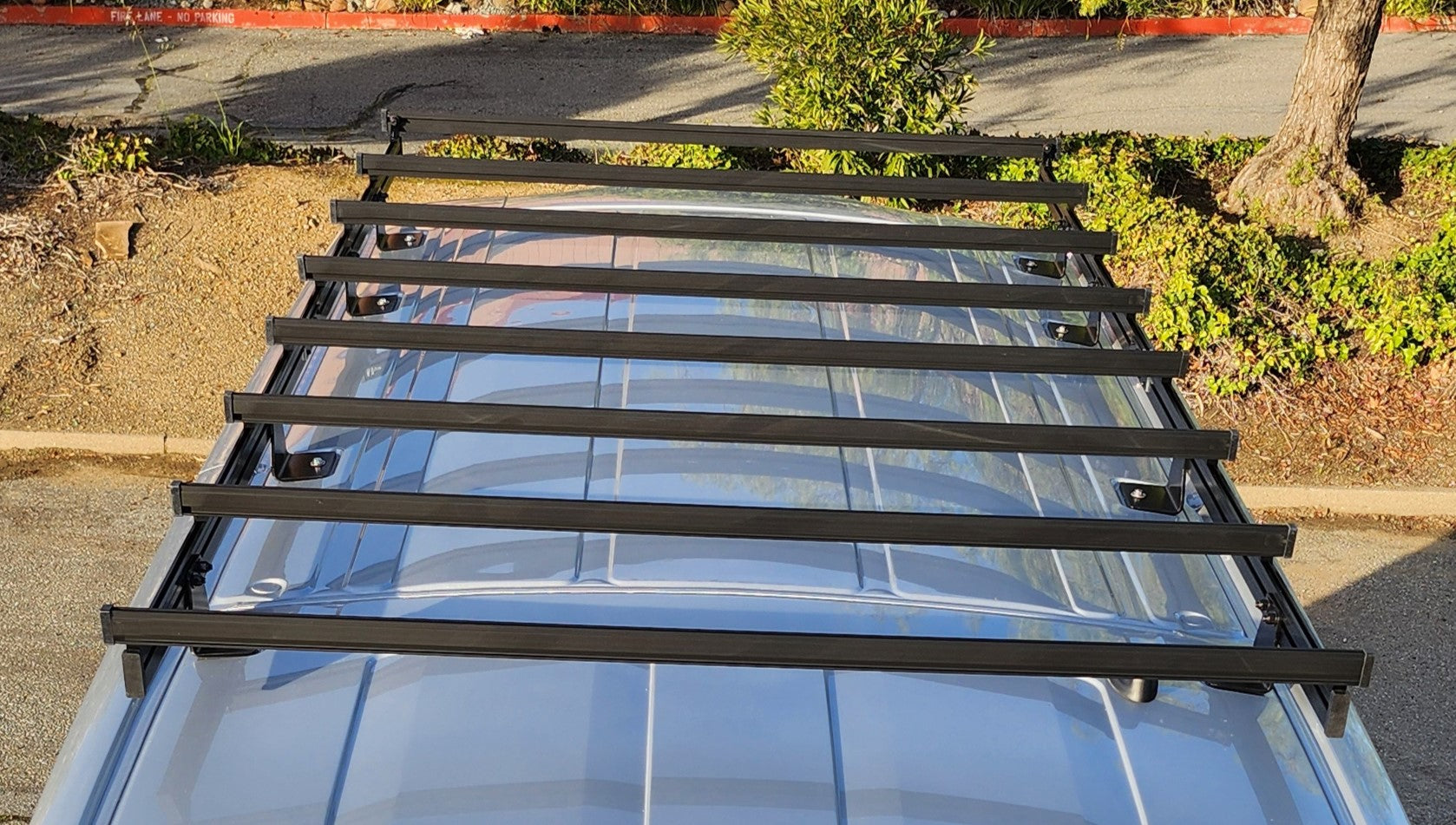 Elevate your van's potential with our exceptional Baseline racking system – the ultimate foundation for all your rooftop endeavors. Crafted from heavy-duty, sleek black anodized aluminum, these robust 10-foot side rails are meticulously designed to perfectly complement regular-length vehicles such as the Ford Transit, Mercedes Sprinter, and Dodge Ram Promaster.
