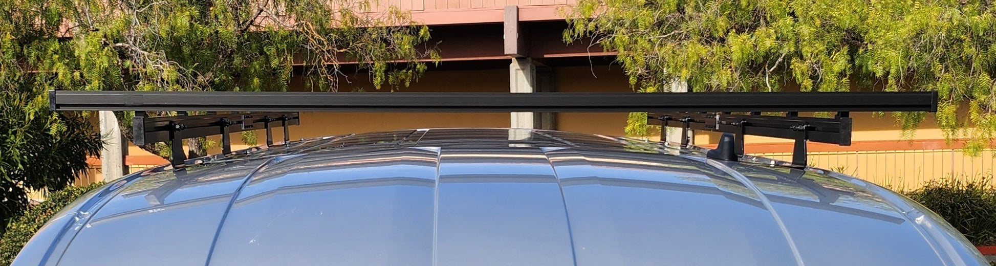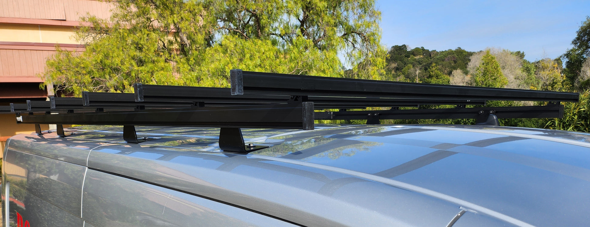 Elevate your van's potential with our exceptional Baseline racking system – the ultimate foundation for all your rooftop endeavors. Crafted from heavy-duty, sleek black anodized aluminum, these robust 10-foot side rails are meticulously designed to perfectly complement regular-length vehicles such as the Ford Transit, Mercedes Sprinter, and Dodge Ram Promaster.